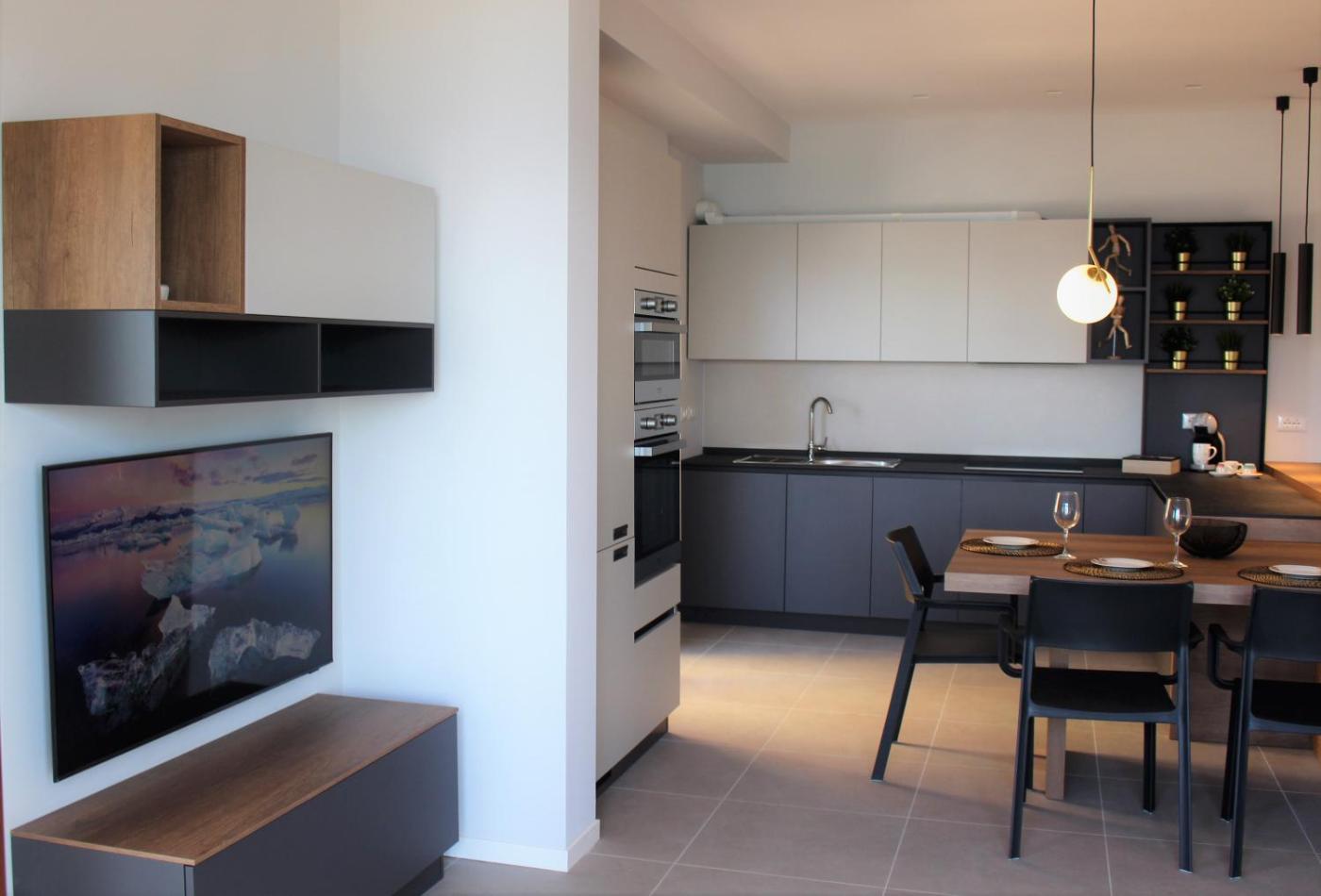 The spacious apartment features 2 bedrooms, 2 bathrooms, bed linen, towels, a TV, a fully equipped kitchen, and a balcony with sea views. For added privacy, the accommodation features a private entrance.