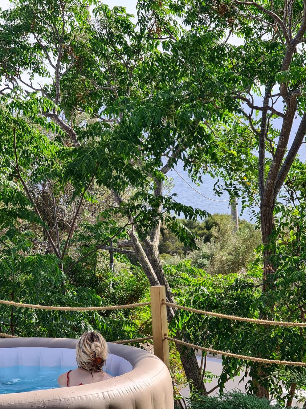 Three-Bedroom House. This holiday homes standout features are the hot tub and fireplace. Boasting a private entrance, this air-conditioned holiday home includes 1 living room, 3 separate bedrooms and 2 bathrooms with a shower and a bidet. Guests will find a stovetop and an oven in the kitchen. The holiday home also features a barbecue. The spacious holiday home offers a flat-screen TV with streaming services, a washing machine, a tea and coffee maker, a seating area as well as sea views. The unit has 6 beds.